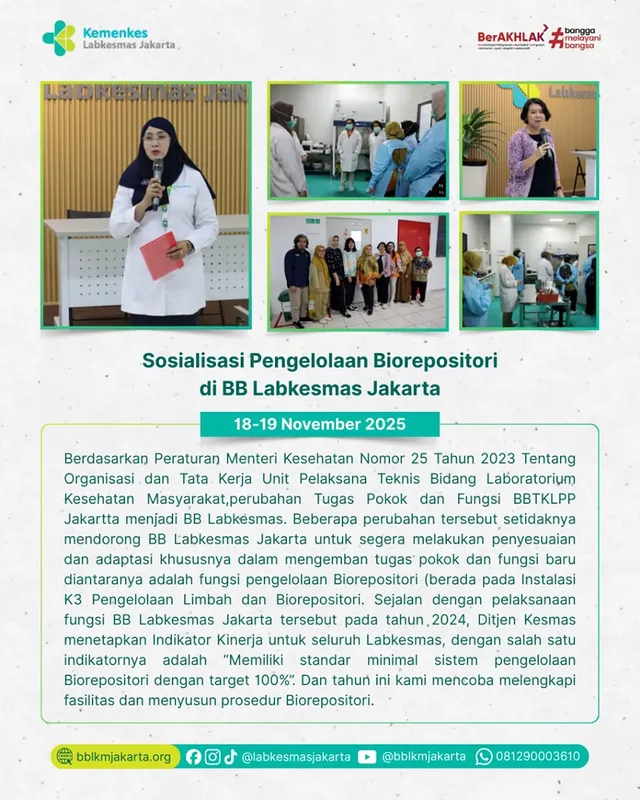 Sosialisasi Pengelolaan Biorepositori di BB Labkesmas Jakarta (18β19 November).