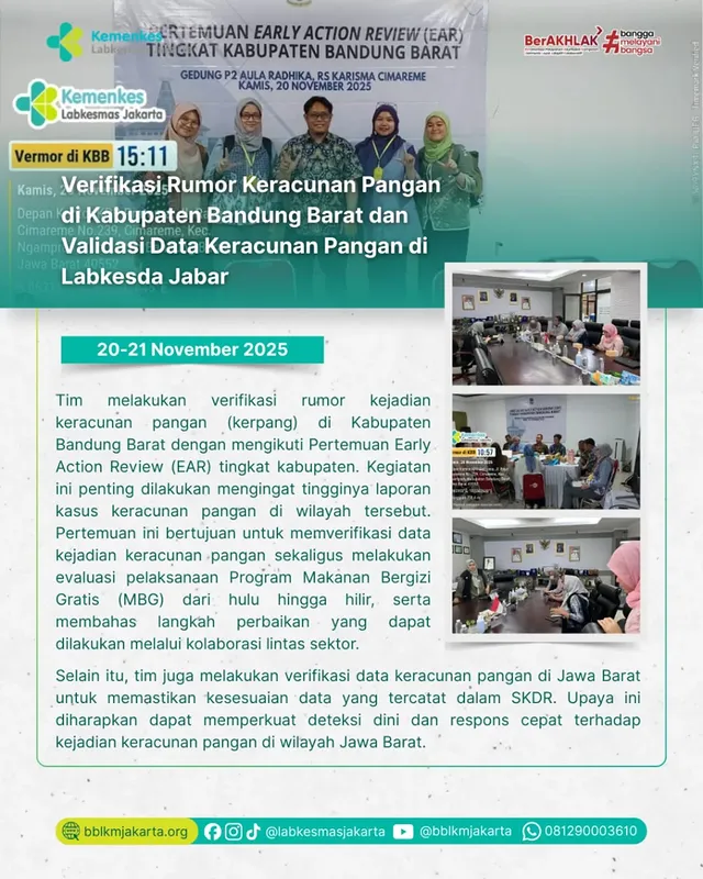Verifikasi rumor keracunan pangan di Kabupaten Bandung Barat dan validasi data keracunan pangan di Labkesda Jawa Barat.