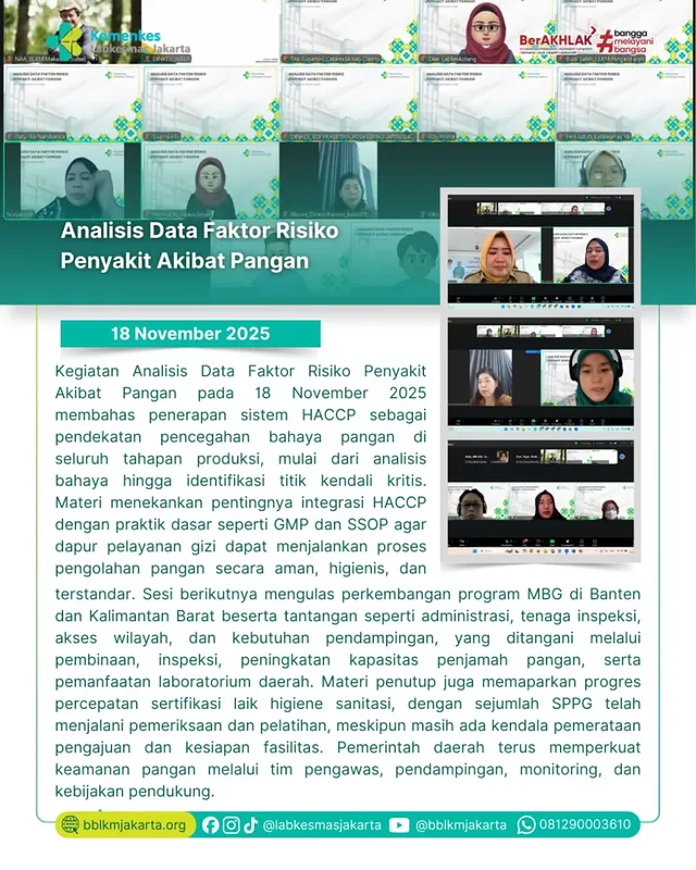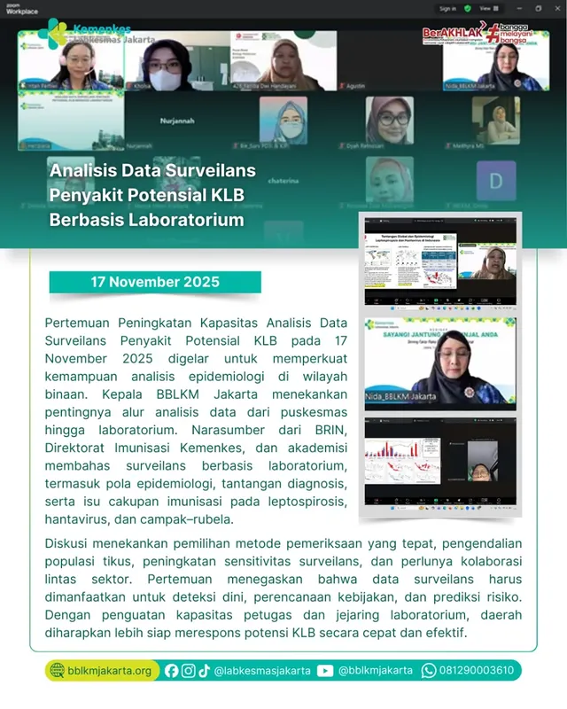 Pekan ini, BBLKM Jakarta melaksanakan berbagai agenda strategis dalam mendukung penguatan kualitas layanan laboratorium, surveilans, serta keamanan pangan di wilayah binaan. Berikut rangkuman kegiatannya: